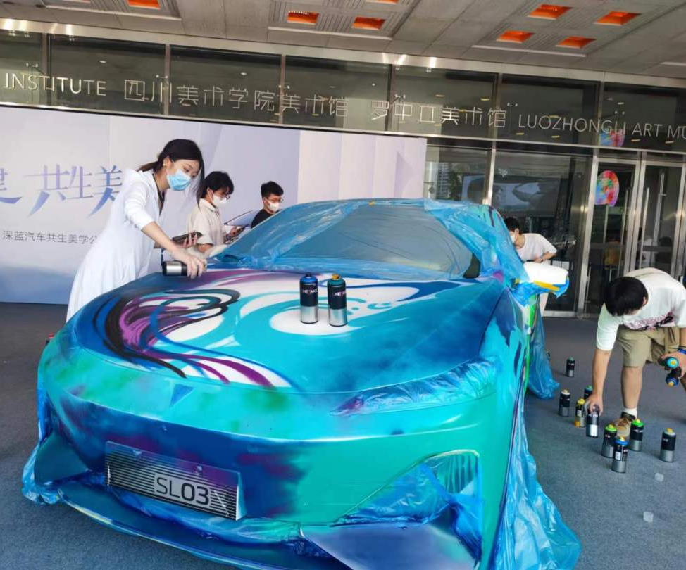 据悉,经过再创作的两台深蓝汽车将在四川美院美术馆广场展示三天,市民朋友可免费参观。
